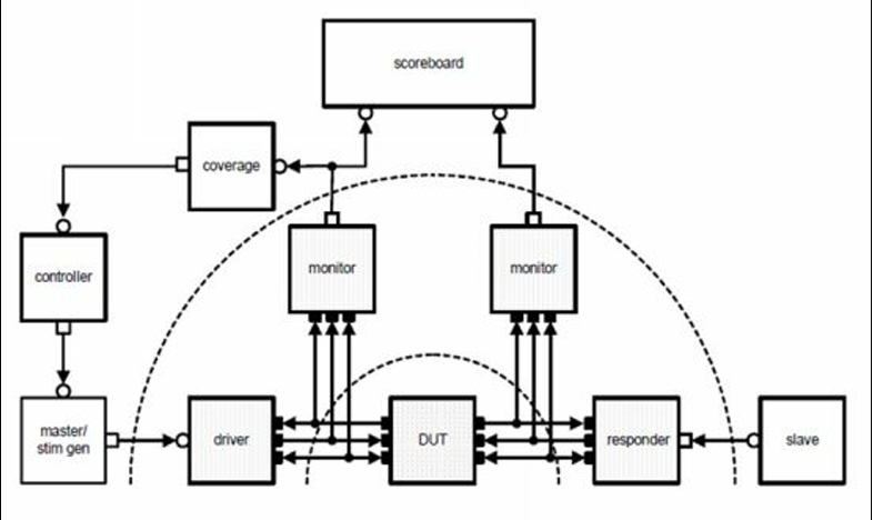 - 基于事务的验证的主要优点是可以在项目内或不同项目的不同验证环境中重用使用事务接口开发的组件。例如:参考上图,只有 driver、monitor 和 responder 需要有一个信号级接口。一旦这些组件将信号级信息分组到事务中,其他组件(如激励生成器(stimulus generators)、从机模型(slave model)和记分板(score board))都可以对事务进行操作。