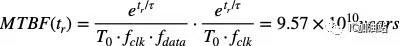 对于一级寄存器,其亚稳态的MTBF计算如下。