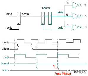 如果adata持续时间小于1个bclk cycle,则可能导致采样失败。这要求source data必须保证稳定不变至少碰见destination clock 3个连续的沿,这个沿可以是上升沿也可以是下降沿,持续3个沿之后才能变,否则就有可能在destination clock domain根本看不到这个data的变化。